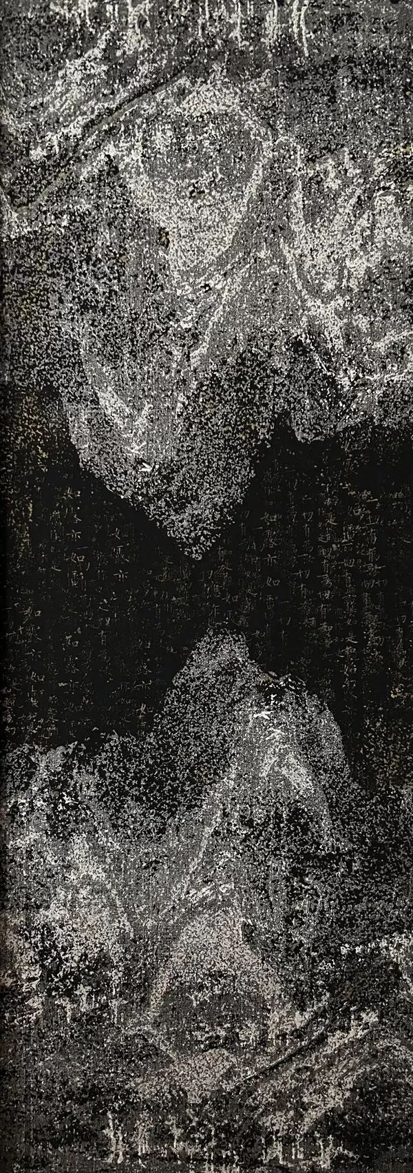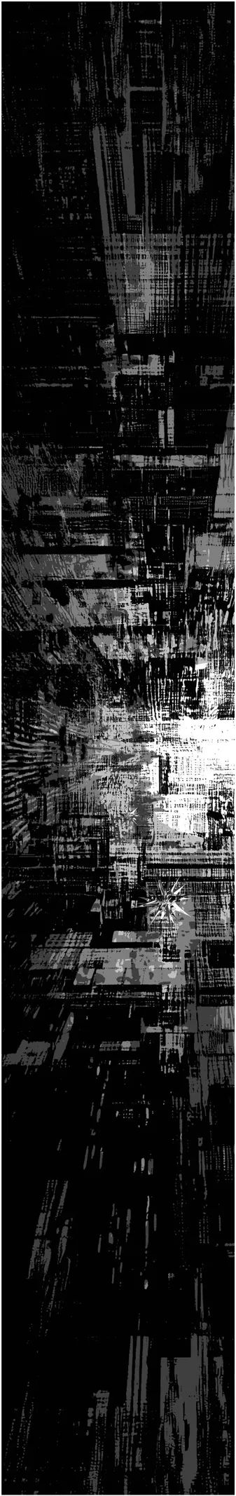 在人类的感知中,快感与痛感的极致往往会导向一种虚空状态。艺术家以灰白色噪点铺陈出充满未知的虚空环境,《临界点》系列正是在此背景下, 对人类感知边界的探索。 混沌扩散的颗粒,如同暗物质般拥挤,而晨昏线般的微弱光芒,则象征着此种虚空状态下的临界表征。或许,人类感知的临界点与自然中某些临界点存在着某种微妙的相似。颗粒的微观随机性与弧线的几何秩序共同构成了宇宙的内在共振。微观感知的混乱与宏观物理规律的近似,不断地提示我们,真正的边界不仅存在于感官的局限,更在于探寻方式和感受记录的盲区。