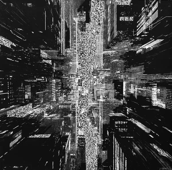 人们对矛盾空间感知的悖论性与自身思维矛盾是相互契合的。艺术家用衰败与繁荣并存的城市景象,颠覆了传统三维的空间逻辑。那些熟悉的人文景观与陌生的星轨、现实的颗粒与虚拟的光晕交织,呈现了诸多对立元素的共存。这不仅是对空间的视觉解构,更是对高度智能化时代的哲学反思。当现实与虚拟交融,人类的存在何以自处?