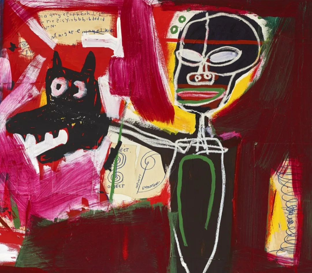 1984年是巴斯奇亚艺术生涯的重要时刻,他在爱丁堡Fruitmarket Gallery举办个展,之后巡展至伦敦当代艺术中心(Institute of Contemporary Arts)及鹿特丹的博伊曼斯・范・伯宁恩美术馆(Museum Boijmans Van Beuningen),这也是艺术家的首场博物馆个展,使他一举成名。本作创作于同年,作品构图层次丰富,既展示丰富多元的创作物料和复杂主题,也体现巴斯奇亚的独特创作语汇,他更因此成为二十世纪的艺坛传奇。