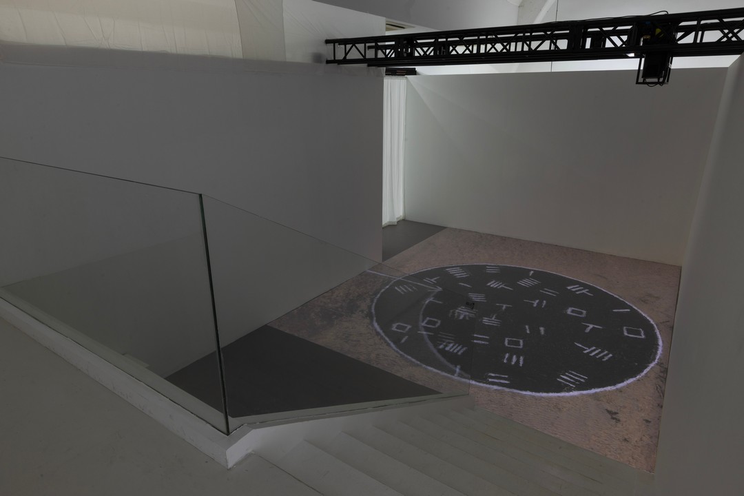 所谓“天壤间”,即为天地之间。天地的阈限是通过人的不同认知而存在,包括人类的宗教、哲学、科学和艺术等等探索。人才是衔接天地间隙与边际的关键所在。作为艺术家的刘旭光,一直以来利用传统的和当代的文化资源,以装置、行为、影像和绘画等多媒介方式,将个人对天壤间的时空思考和经验,仪式化地交融于他一意孤行的艺术实验。他依据阐释天地世间万象变化的《易经》,将“卜”的符号、生日节点及河洛数字等等信息,借地而生地寻求不同地理空间和自然生态的痕迹关系。其作品仿佛是祭坛,又似谶语,在沉郁的凝视与负重中,聚合于对历史的迎纳,对大地的皈依,以及对象征物质文化色泽的抚慰,塑造了一个独属于他命名的“维层空间”——融合宇宙的认知、哲学思考和多维度地拓展审美表达的边界(刘旭光语)。