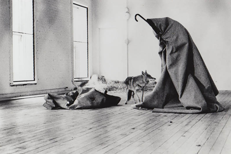 1974年博伊斯与印第安土狼共处一室的行为艺术表演