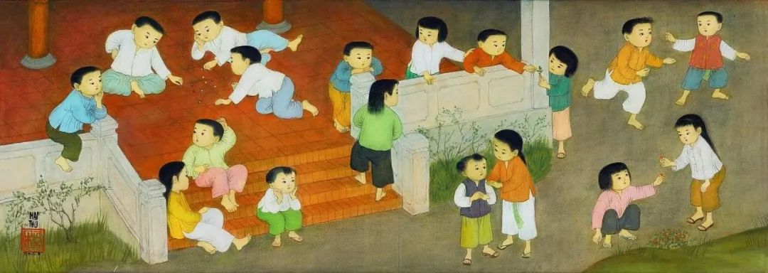 越南艺术家梅忠恕的大尺幅绢本作品《生活的乐趣 II》创作于1963年,正值艺术家在巴黎艺术事业的巅峰,展现了其创作中最为珍贵的情感和怀旧情怀。