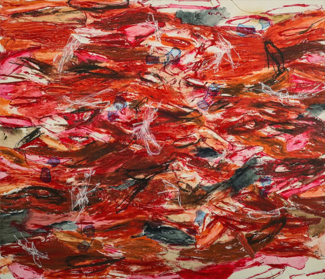 克里丝汀·艾珠是70后东南亚女性艺术家中的顶流,《藏身层叠之中 #2》中,深红花瓣状的笔触仿佛要从画布中迸发而出,似乎有一种催眠的魔力,就像艺术家将她的作品形容的“可见与不可见的层次”。