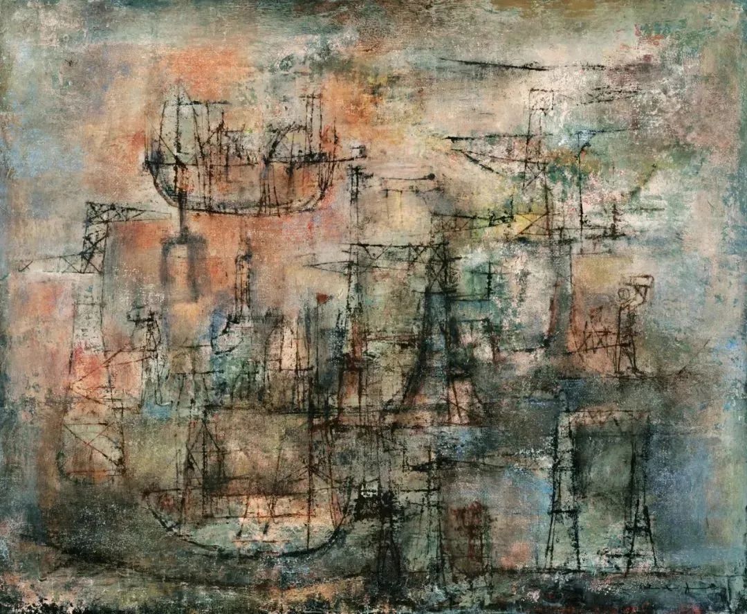 “无界之诗”专题中,一件完成于1952年的《大船入港》,将商船往来、生机蓬勃的景象纳入画境。元素丰富,构图大开大阖。此作在完成后由美国两代藏家珍藏数十年,后纳入亚洲重要私人藏家之手。