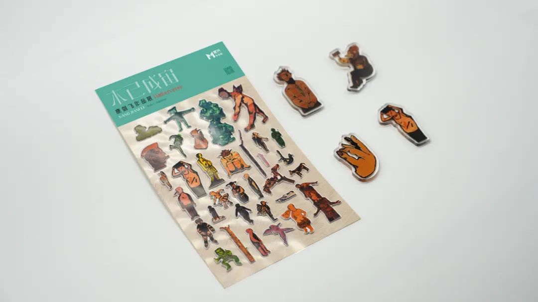 衍生品种类丰富,主题涵盖《观看黑鸟的方式》系列,包含极具设计感的立牌摆件,趣味十足的冰箱贴与泡泡贴纸。