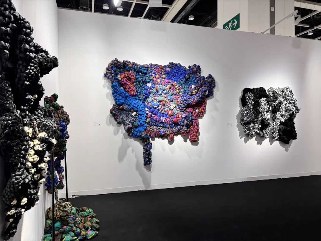 本届香港巴塞尔的一个特别显著的亮点在于数量众多且视觉形式多样的纺织艺术作品。这一趋势在去年香港巴塞尔上就已经十分突出。