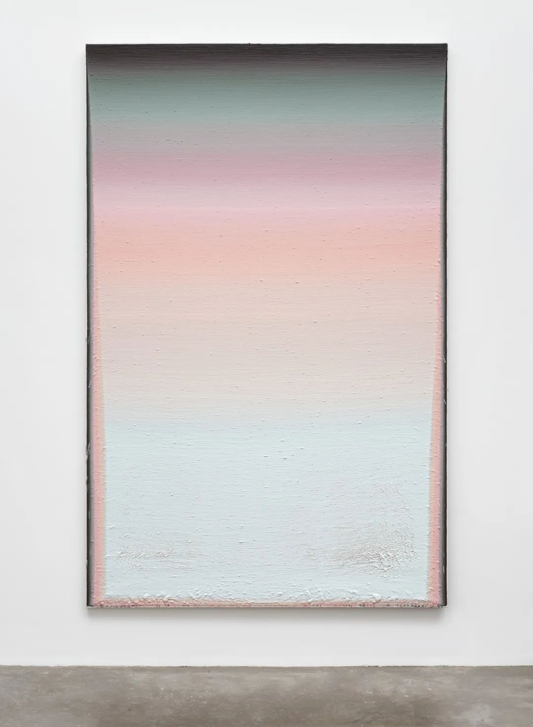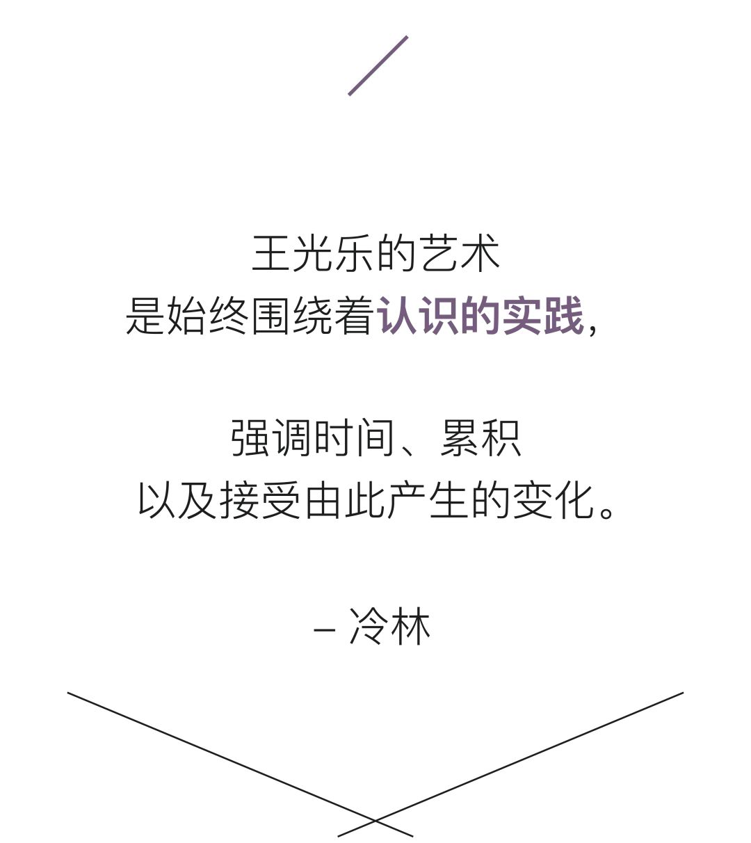由于空间的限制,这种竖立的创作形式使得每一次涂刷的颜料不再受艺术家的全权掌控,画面因重力作用呈现出独特的肌理与形态。时间的多重形态和物质的痕迹在看似极简的技法中展露出来,但却远非其呈现的表象,展开了王光乐关于主体与对象、存在与时间之间的哲思。