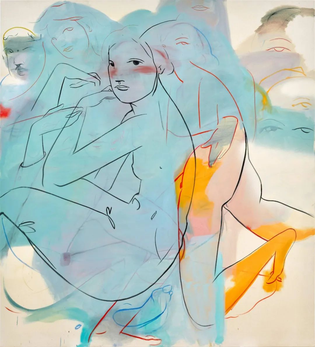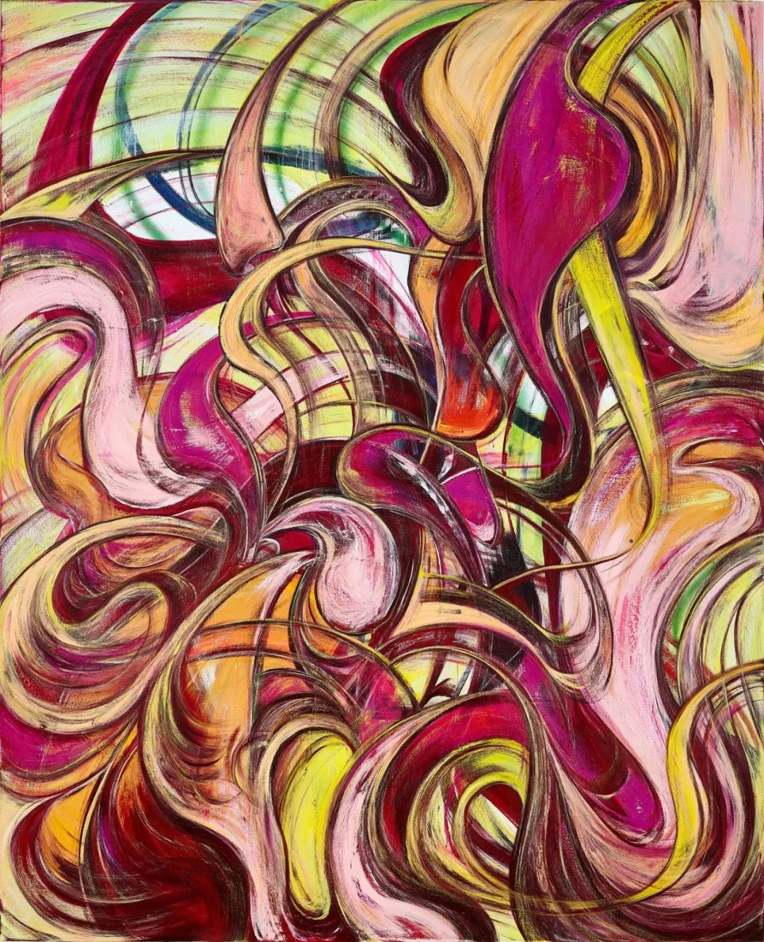 作为当代艺坛崛起新秀,方媛透过融汇不同元素从视觉中探索人类情感。对艺术家而言,画布就如隐喻的载体,反映着人类生活中的动荡和变幻莫测。压缩丰富色调和狂野笔触于平面上的创作模式更成为她释放焦虑的方法。2022年的《烟花 05》展现形象相互交汇又各自分离,在视觉上带来源源不绝的动感活力,犹如烟火爆发一刻释放的热量和光线,充斥着浓厚的能量与激情。柔逸漂浮的线条带有方媛作品常见的女性气息,反映艺术家潜意识中模仿女性的身体,展示她个人脆弱并反映其作为亚洲女性在瞬息万变的浮华世界中的自身经历。