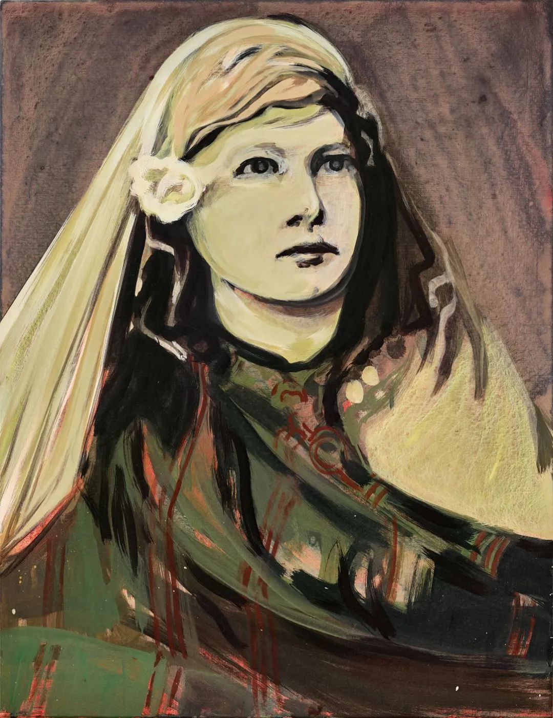 法国艺术家克莱尔 · 特伯莱常以历史上的一些关键人物和时刻作为灵感,反思人类史上的脆弱本性和时间的流逝。她对人物的心理描绘有着极高的敏感度,尤其在女性人象中,演绎她们不断在屈服与支配或接受与侵略之间的心路历程。2015年作的《亡魂》以艺术家标志性的明亮色彩配搭尖锐色调刻划了伊莎贝尔 · 埃伯哈特,一位在19世纪和20世纪对女性几乎不可能的年代,积极挑战性别、种族和宗教偏见的先锋。
