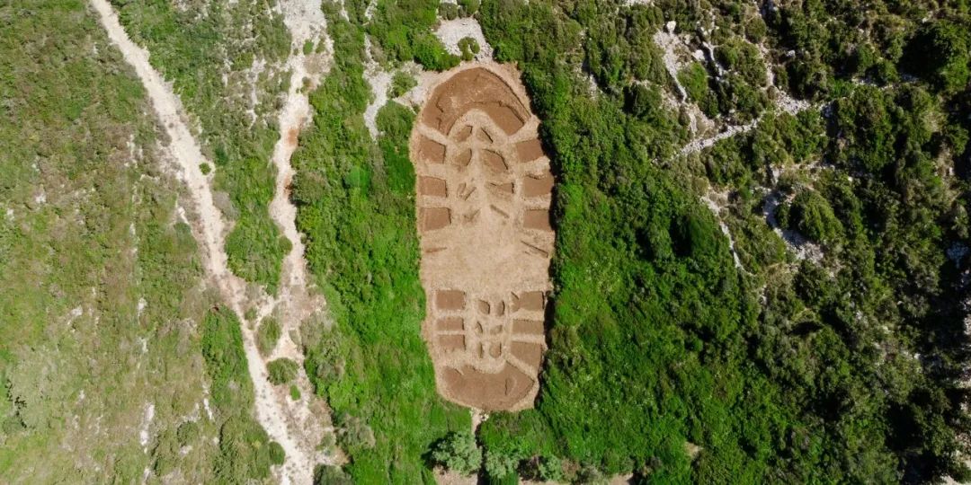 希腊视觉艺术家The Krank多年来专门从事壁画和大型艺术装置创作。《脚印》是他耗时15天占地1000平方米土地塑造的超大尺寸人类痕迹,其喻意在于表明人类对全球生态系统的破坏所产生的持续性影响。这个庞然大物在帕索斯岛上刚一亮相,就收获了人们蜂拥而来的关注。