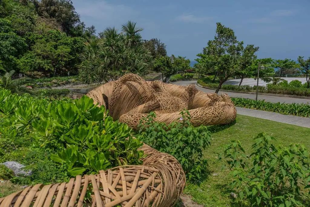 作品以蕨类植物的意象作为作品造型的参考,卷旋细长的弯勾是蕨类植物幼叶常见的样貌,仿佛像问号般无限延伸。用竹编的方式,编织出类似树根、树干经脉的型态,象征成长、蜕变的生长痕迹。台湾艺术家陈依慧试图创造一个大型的场域,让观者走入作品感受自然媒介的温柔与韧性,营造出一个疗愈之所。