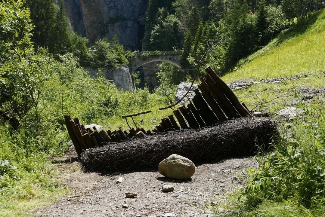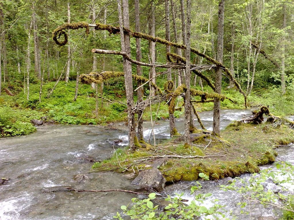 官方要求每个参展作品至少能持续6个月,且参展人员作品的材料均需取自森林公园。创作者不可使用钉子,铁丝等作为作品固定方式,只可使用麻绳等再生材料。同时也不可采摘园内新鲜树枝,只能捡拾枯萎的枝叶和草类。每逢阴雨天气,艺术家都不得不在相当艰苦的环境下完成布展。好在丰富的地貌可以让艺术家的思路及时作出调整,迸发出新的灵感。