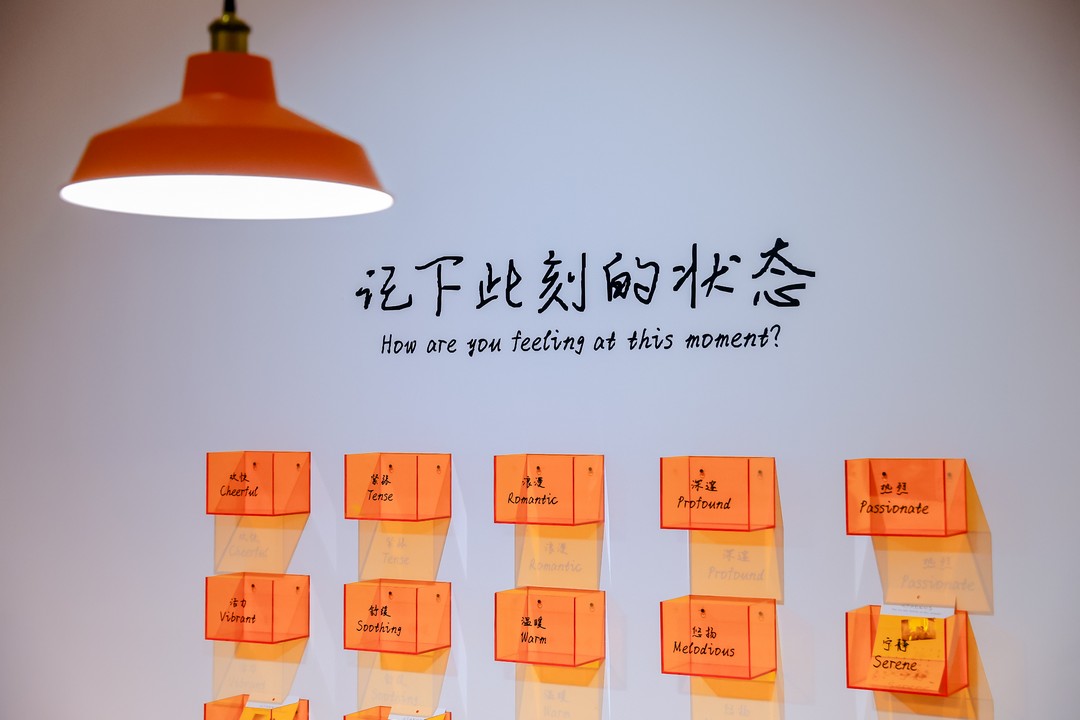 除了作品之外,展厅内设置了多处打卡点——颇具复古风格的“报刊亭”“复古照相馆”与“情绪留影角”都是不可错过的互动体验。“报刊亭”内摆放着策展团队原创的《情绪日报》,不仅能够帮助观众更好地理解展览的时代背景,而且可以成为一份极具时代特色的打卡道具;来到“复古照相馆”,观众可以在按下快门的刹那,感受现在与过去的交融,将此时此刻定格为一份永恒的记忆;在“情绪留影角”,观众可以在情绪卡片上写下个性化的感受,书写完毕后的卡片既可以放进展墙的卡槽,使其成为“情感博物馆”的一部分,也可以随身带走,将观展记忆带回家。