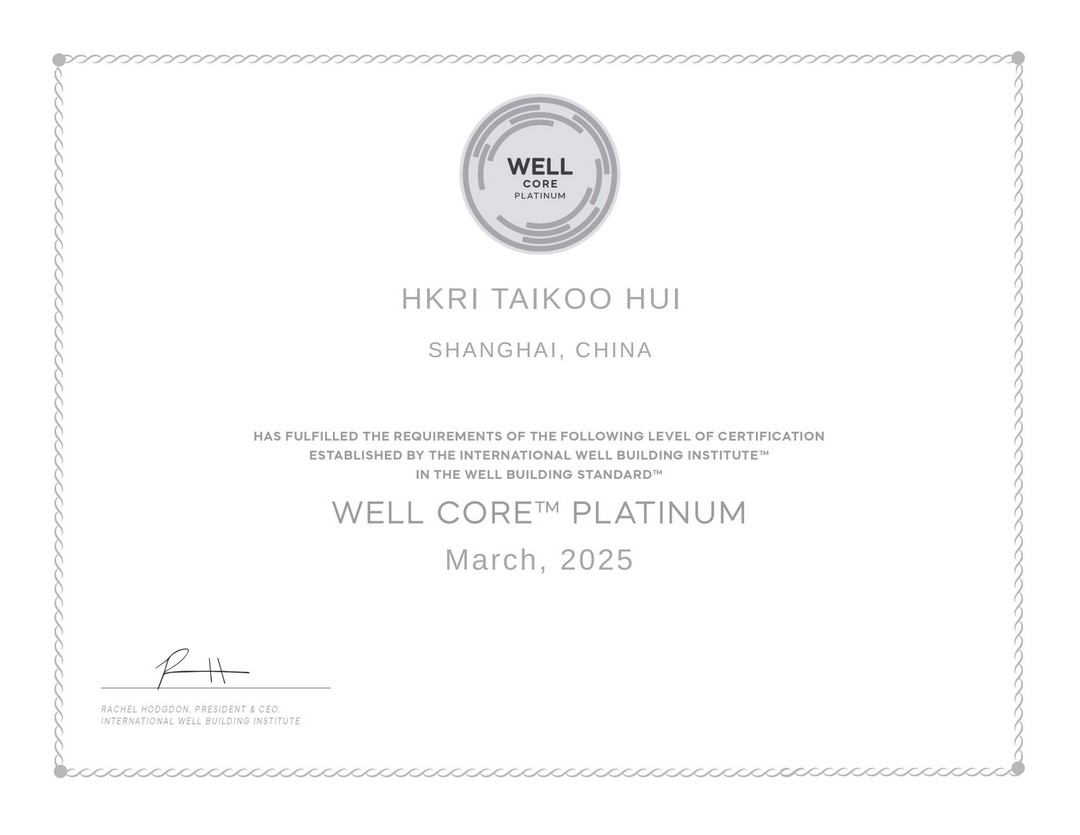 2025年3月,兴业太古汇凭借品质优异的室内空气、充分利用自然采光营造的舒适环境、充足的运动场所和社会活动以及企业的人文精神,成功斩获WELL认证的最高级别——WELL CORE铂金级认证。与传统绿色认证不同,WELL认证从空气、水质、光照、运动空间等十大维度,全方位评估建筑环境对人体健康的影响,是全球首个专注于建筑使用者健康与福祉的权威评价体系。荣获此次认证,表明兴业太古汇不仅通过卓越的室内环境显著提升建筑内人员的健康水平、幸福感与满意度,也以良好的工作环境设计,激发办公的创造力,进一步营造健康向上的社区氛围。