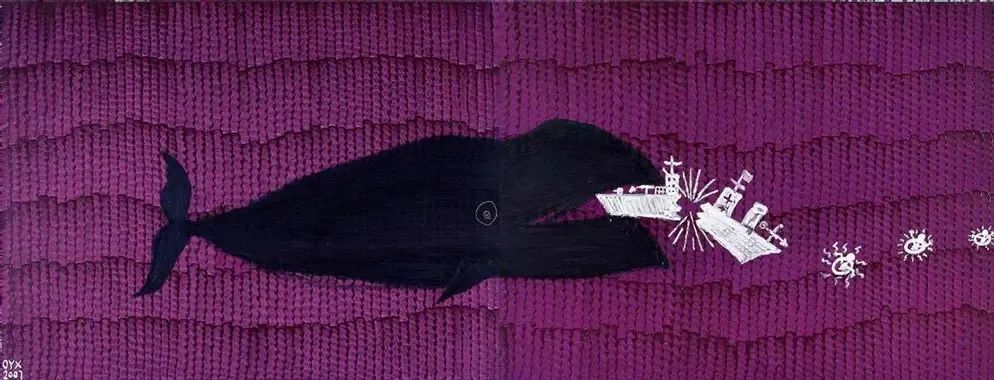 欧阳春《鲸鱼吃掉坏蛋》,油彩画布,130 x 170 cm,2007年作,拍卖成交价1,160,700 港币