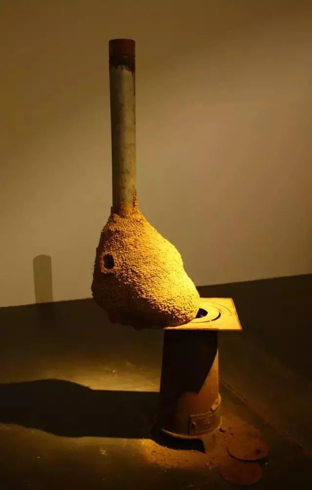 闫冰《炉子》,泥、炉子、复合媒材,尺寸可变,2009 年作。自2009 年开始,闫冰便以泥土为主要媒材并结合其他现成物创作,并在该年于北京UCCA 举办「闫冰:温度」个展,打响名声。是次呈现的《新泥No.6》为其「泥土」系列中,用土壤的可塑性和画框的艺术象征,讲述自我绘画观的精彩创作