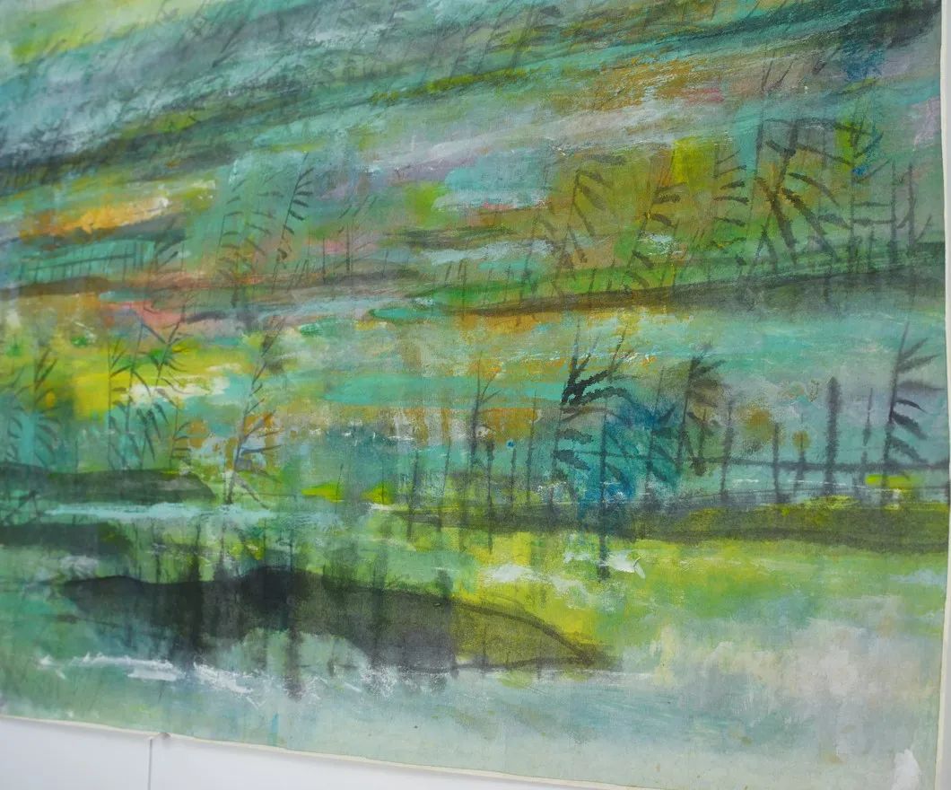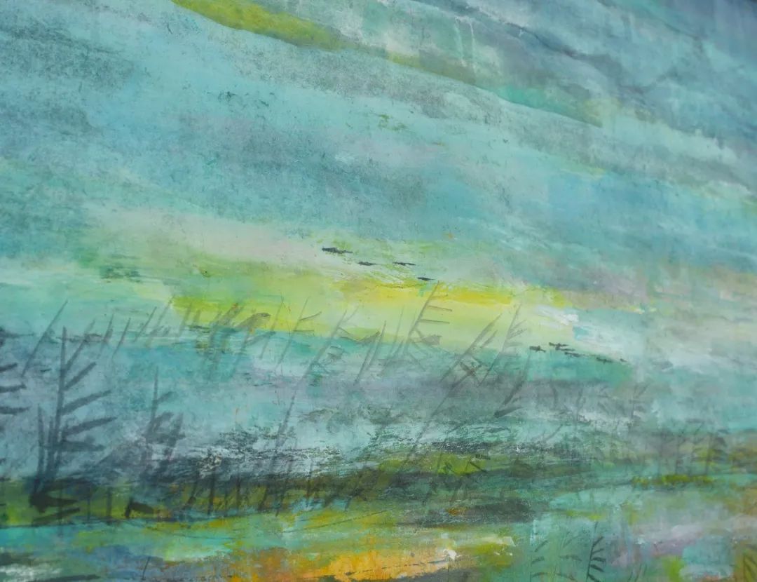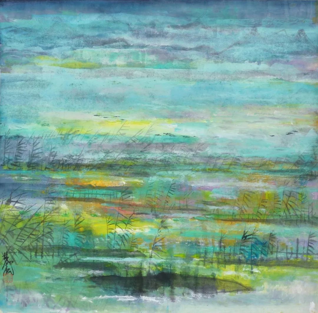 「在平静的湖面上一群山鸟低低飞过水面的芦苇,这些画面,深入在我脑海里,但是我当时并没有想画它。解放后我住在上海,偶然想起杜甫的一句诗『渚清沙白鸟飞回**』**…因此我开始作这类的画。画起来有时象在湖上,有时象在平坦的江上,后来发展到各种不同的背景而表达不同的意境。」