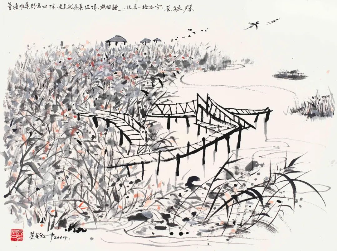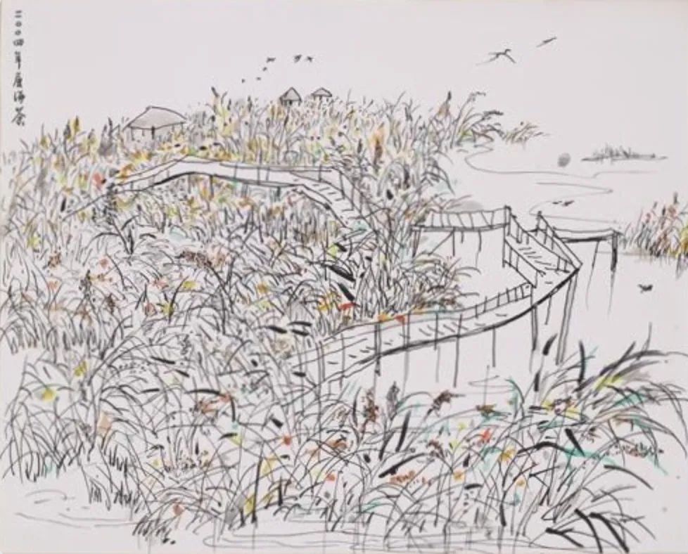 2004年,另幅吴冠中〈苇塘〉速写,现藏浙江美术馆