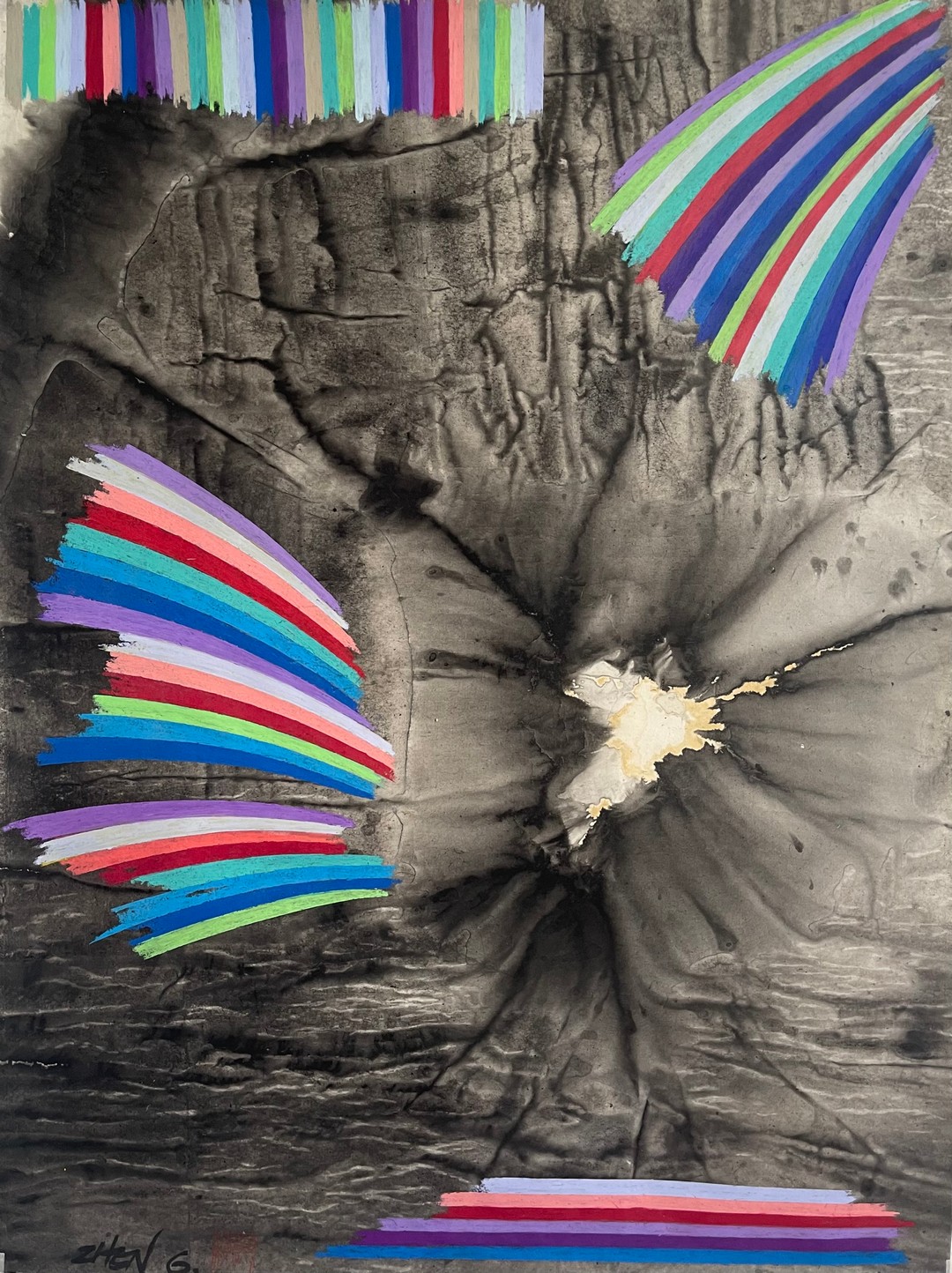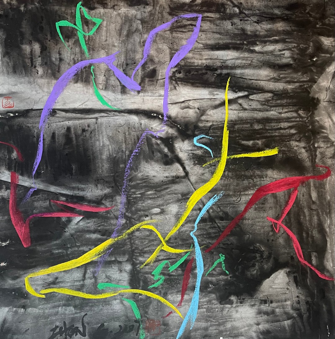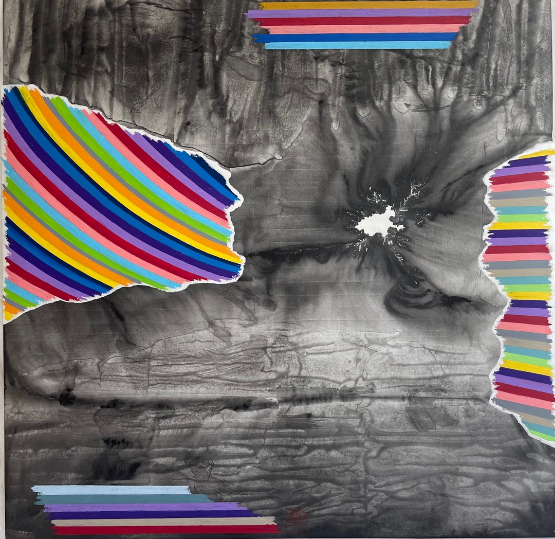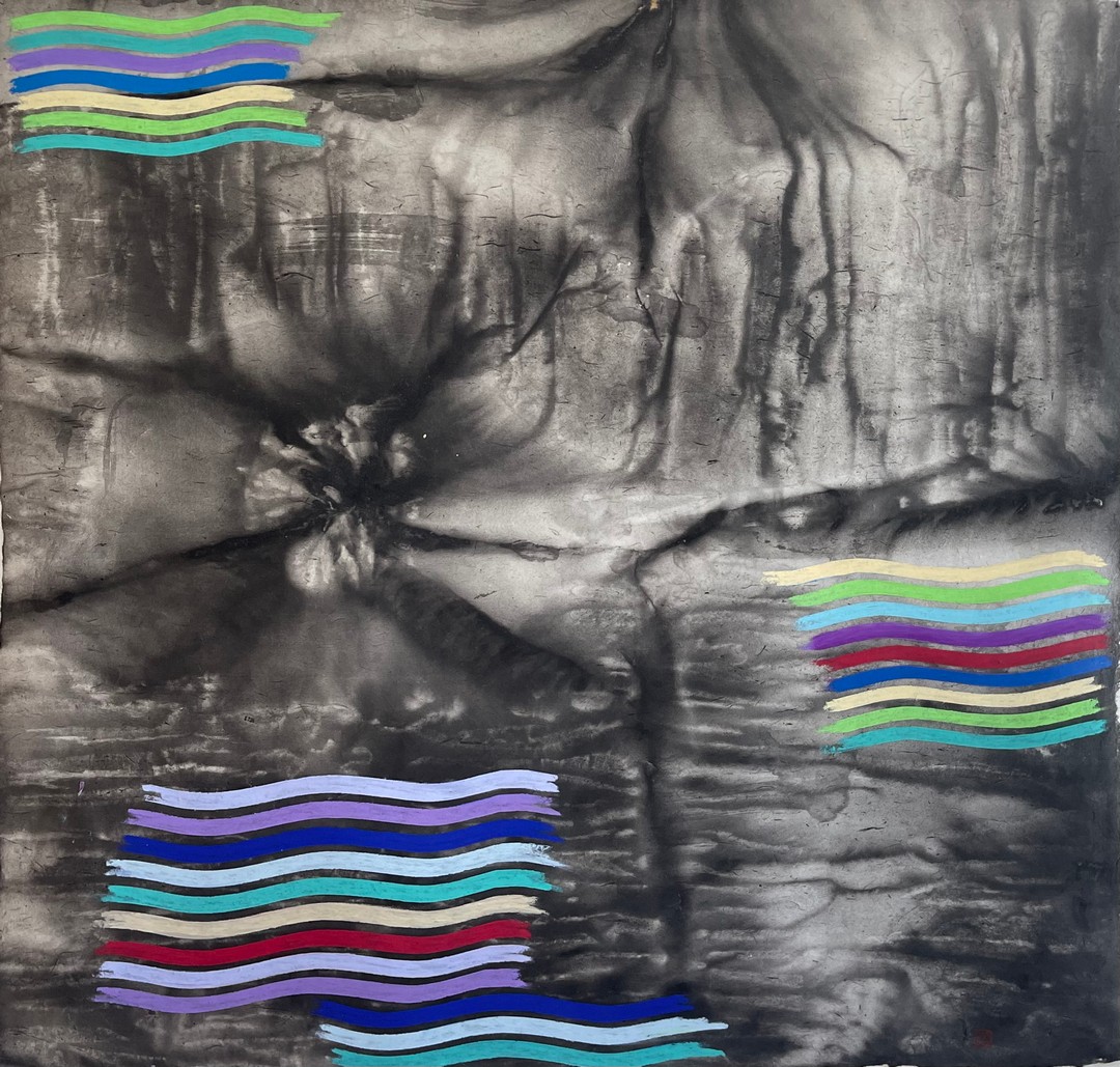 Zhen Guo New View 2024 Ink and oil pastel on Rice paper 69-8 X 69-8 CM