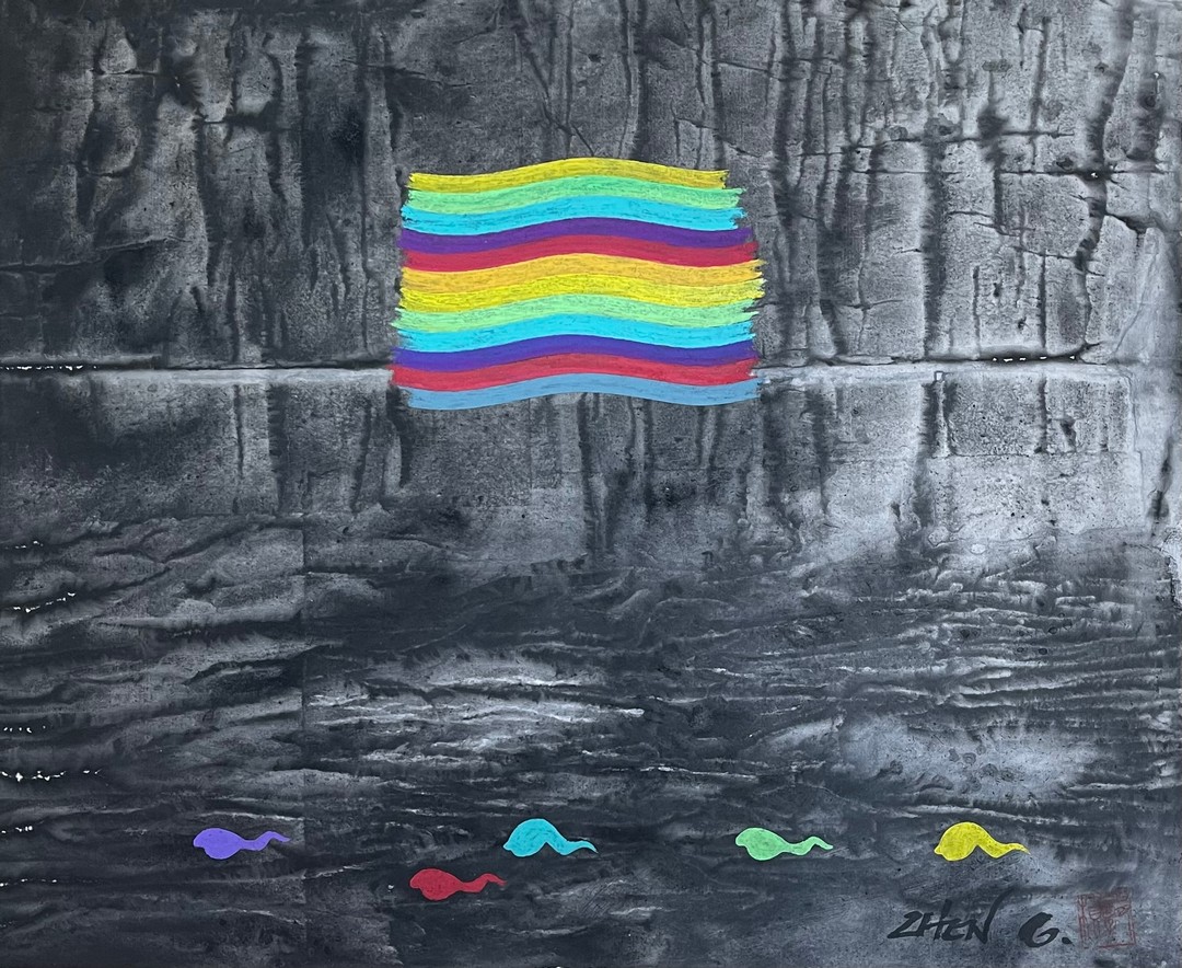Zhen Guo Life with Color 2024 Ink and oil pastel on rice paper 68-6 X 72-4 CM