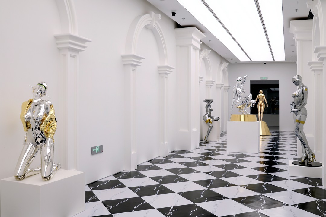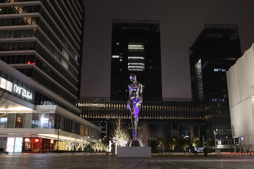 空山基个展“光·透明·反射”户外雕塑作品,上海花木时光里户外广场,2025年。