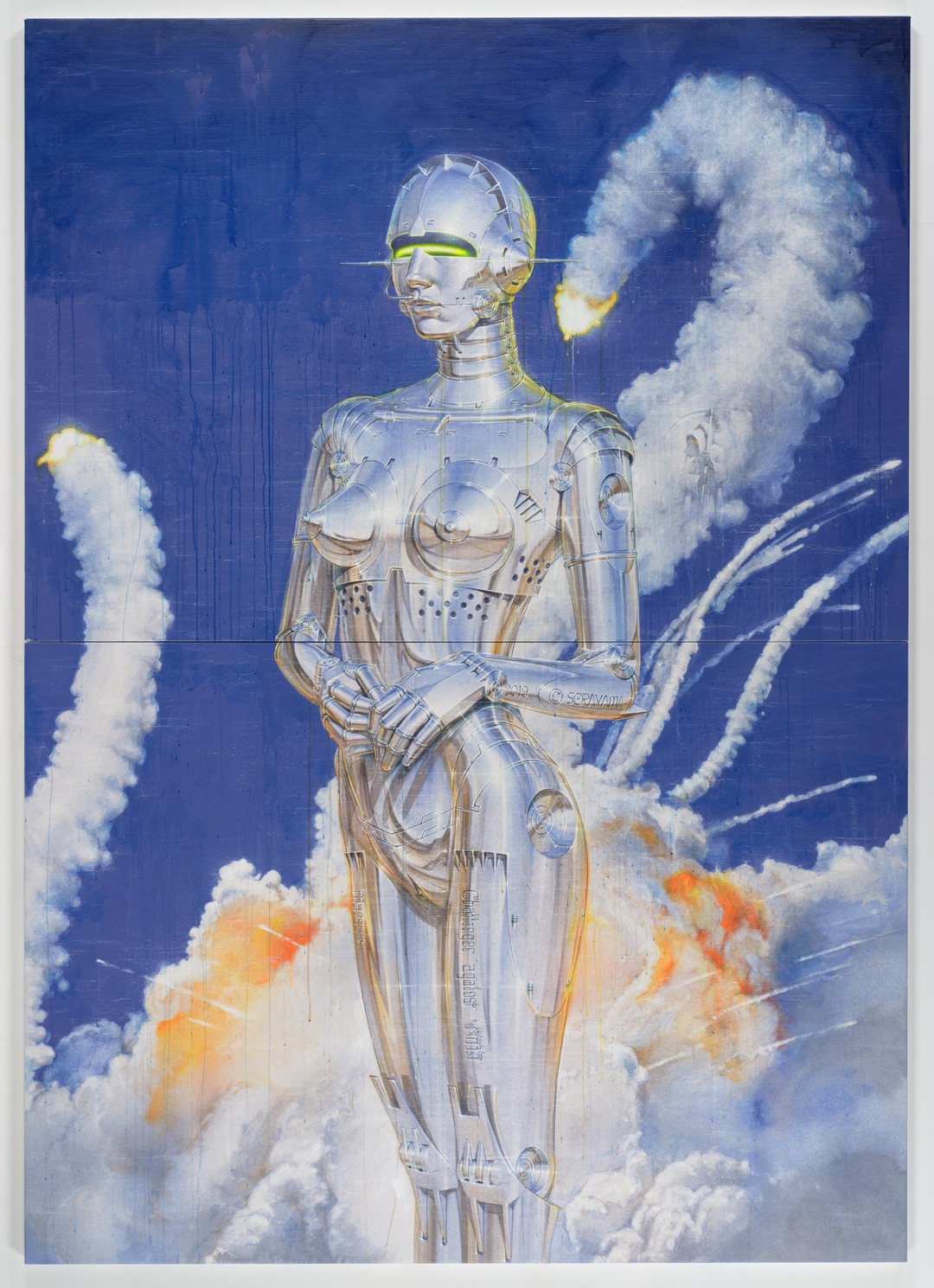 《Untitled无题》,空山基,布面丙烯、数码印花,H278.8 x W197 × D4 cm (diptych),2023年。