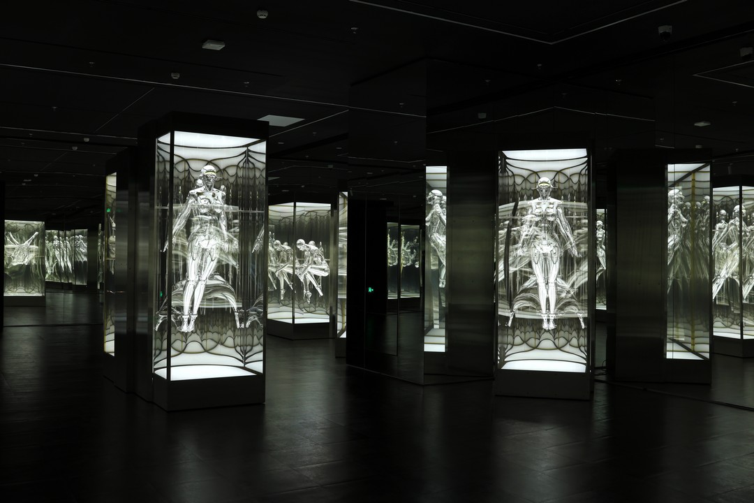 这两年人类已在人工智能领域上具有重大突破,人类与机器的关系变得越来越紧密,空山基的2025年大型个展“光・透明・反射”通过光影、金属质感和流畅的未来主义线条,呈现出既冷峻又富有生命力的机械生物形象,让观众在光与影对的交错中,思考科技对人类感知、情感和身份的影响。