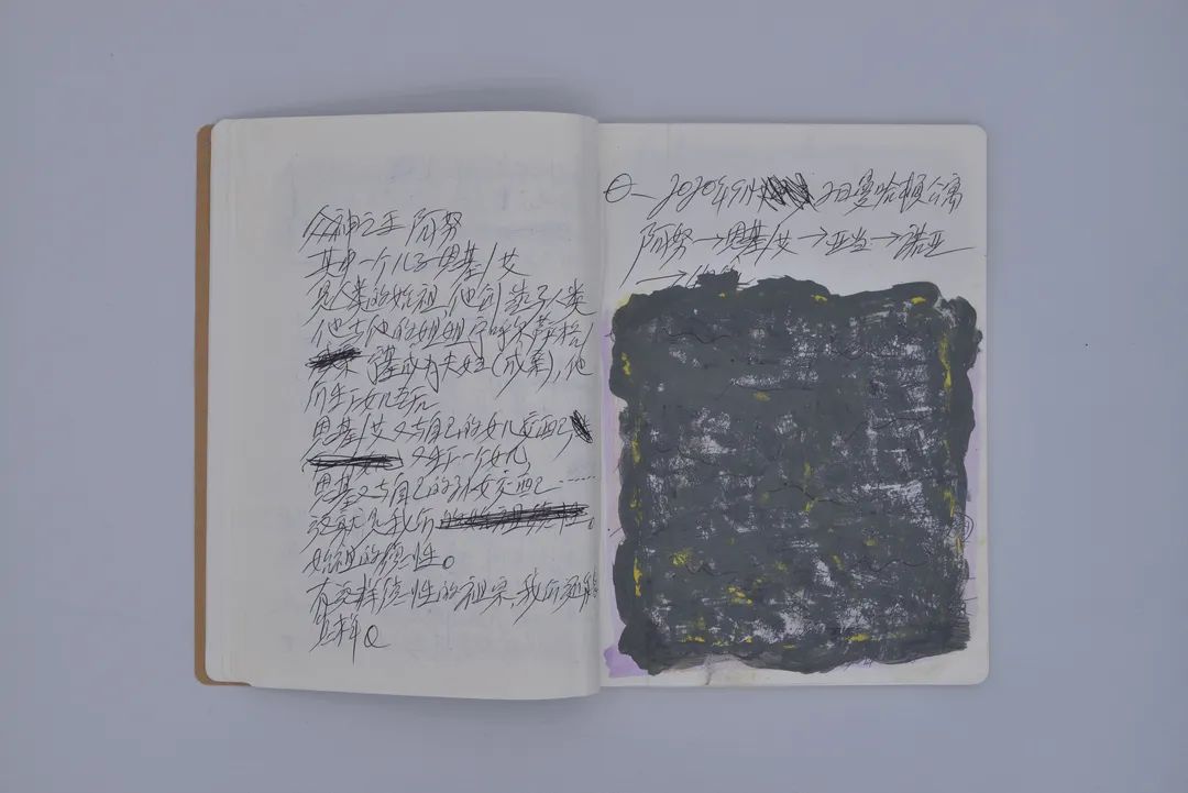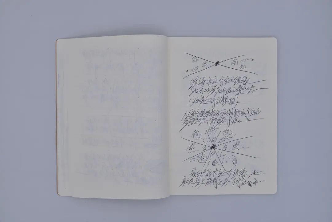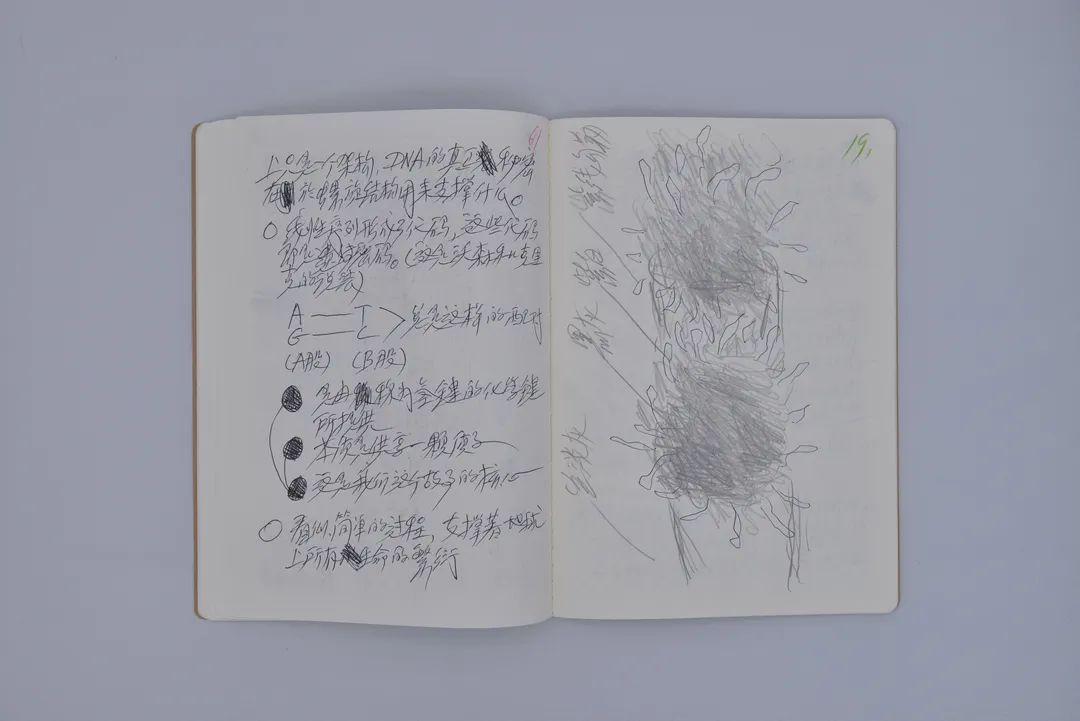与此同时,展厅中还首次公开展出李山在过去多年创作实践过程中留下的 30 本笔记与手稿,涵盖其对生物、科学、哲学与古文明历史等方面的记述,以及创作过程中的草图与构思,为观众提供了一个可以窥见艺术家如何将复杂的理论研究与哲学思考转化为震撼性创作的窗口。