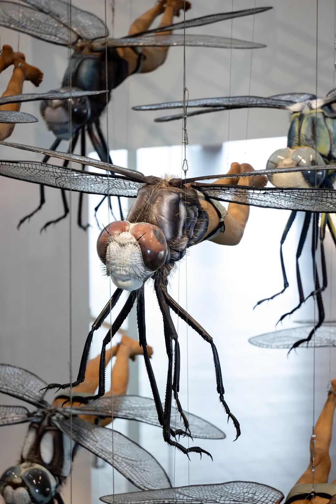 在《偏离》中, 李山将人类下半身与蜻蜓上半身嵌合,创造出与人类等身比例的“蜻蜓人”新物种。超现实的形态不仅挑战了传统的艺术审美,更是通过打破物种界限,解放固有的人类概念, 以更广阔的视角重新审视生命的多样性与可能性。