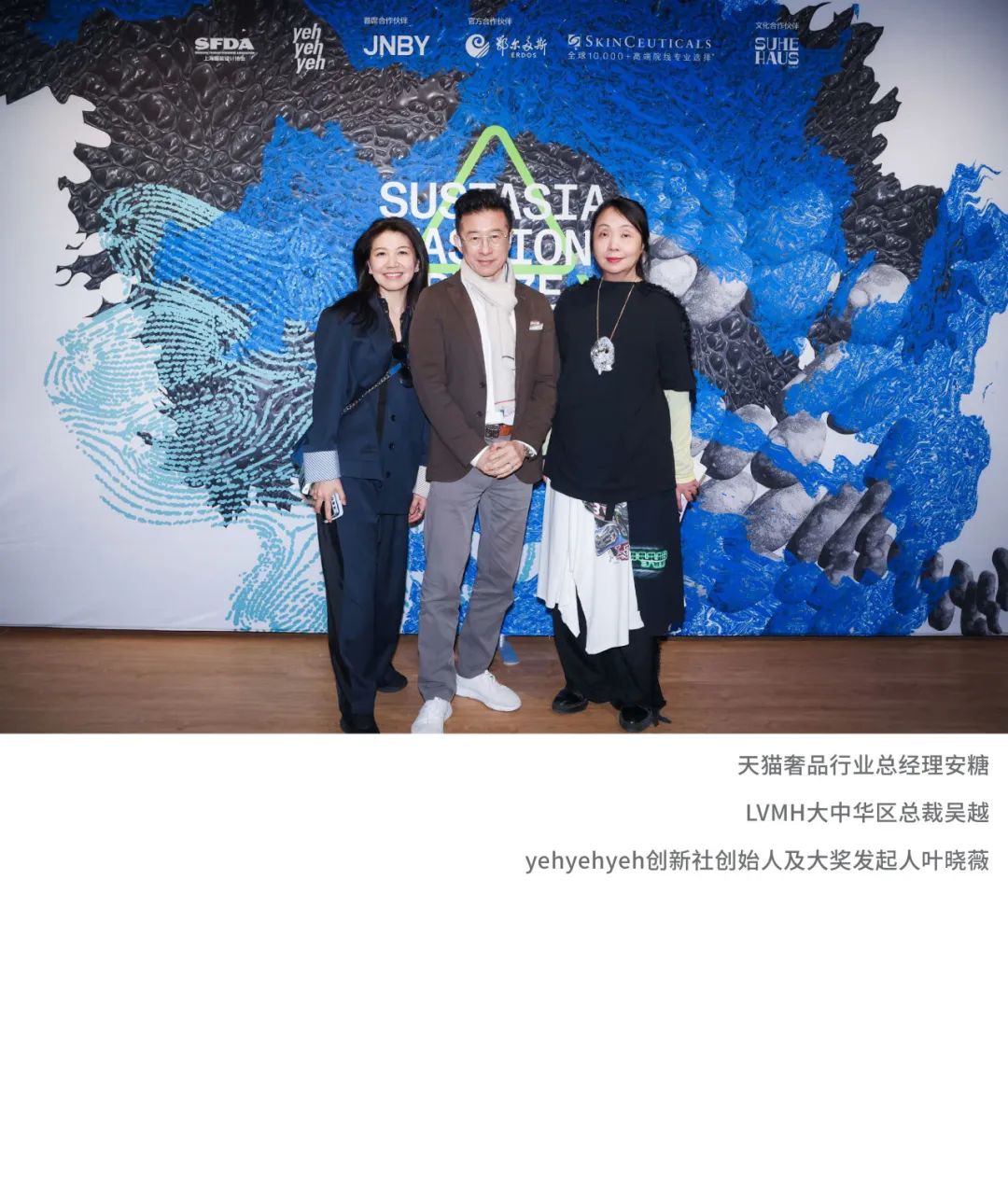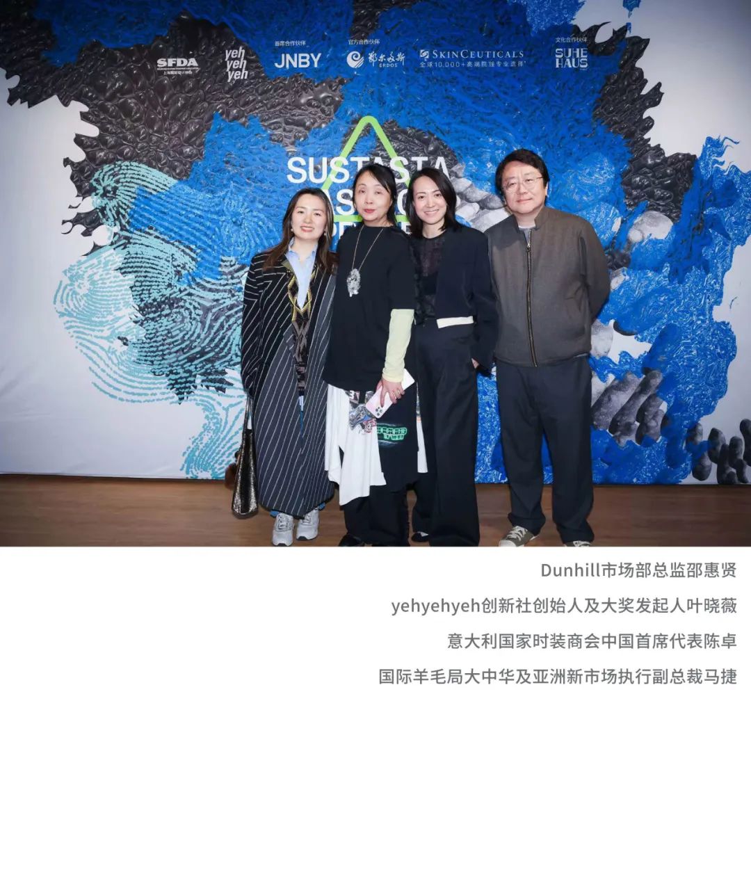 大奖颁奖晚宴由BOH PROJECT 主理人Bohan Qiu 主持;LVMH集团大中华区总裁吴越、鄂尔多斯集团总经理戴塔娜、LABELHOOD 蕾虎联合创始人刘馨遐、yehyehyeh 创新社创始人及大奖发起人叶晓薇为八位入围设计师颁发“善艺挑战“证书