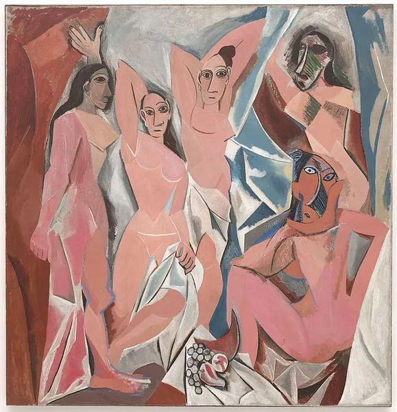 1907年,26岁的毕加索完成《亚维农的少女》,这幅描绘巴塞罗那妓院场景的画作彻底颠覆传统透视法。他将人物拆解成尖锐的几何块面,非洲面具般的面孔充满原始张力,连好友马蒂斯初见时都直言“这像一场艺术灾难”。