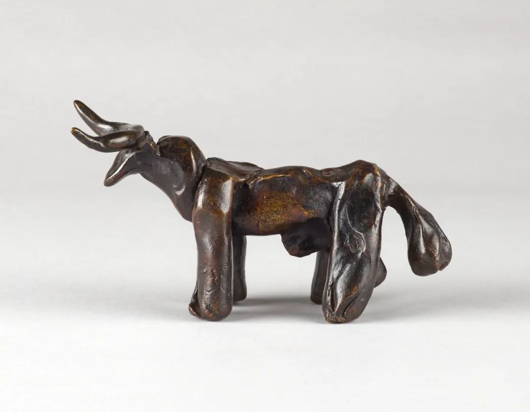 作于1957年的青铜雕塑《公牛》为两个版次的其中之一,透过对原始材料的塑造和重新加工,毕加索重塑了动物的概念,将其抽象化,直至公牛的特征被简化为极简形式。艺术家亦在此过程中将神话、历史和身份认同凝聚为自己的独特标志。