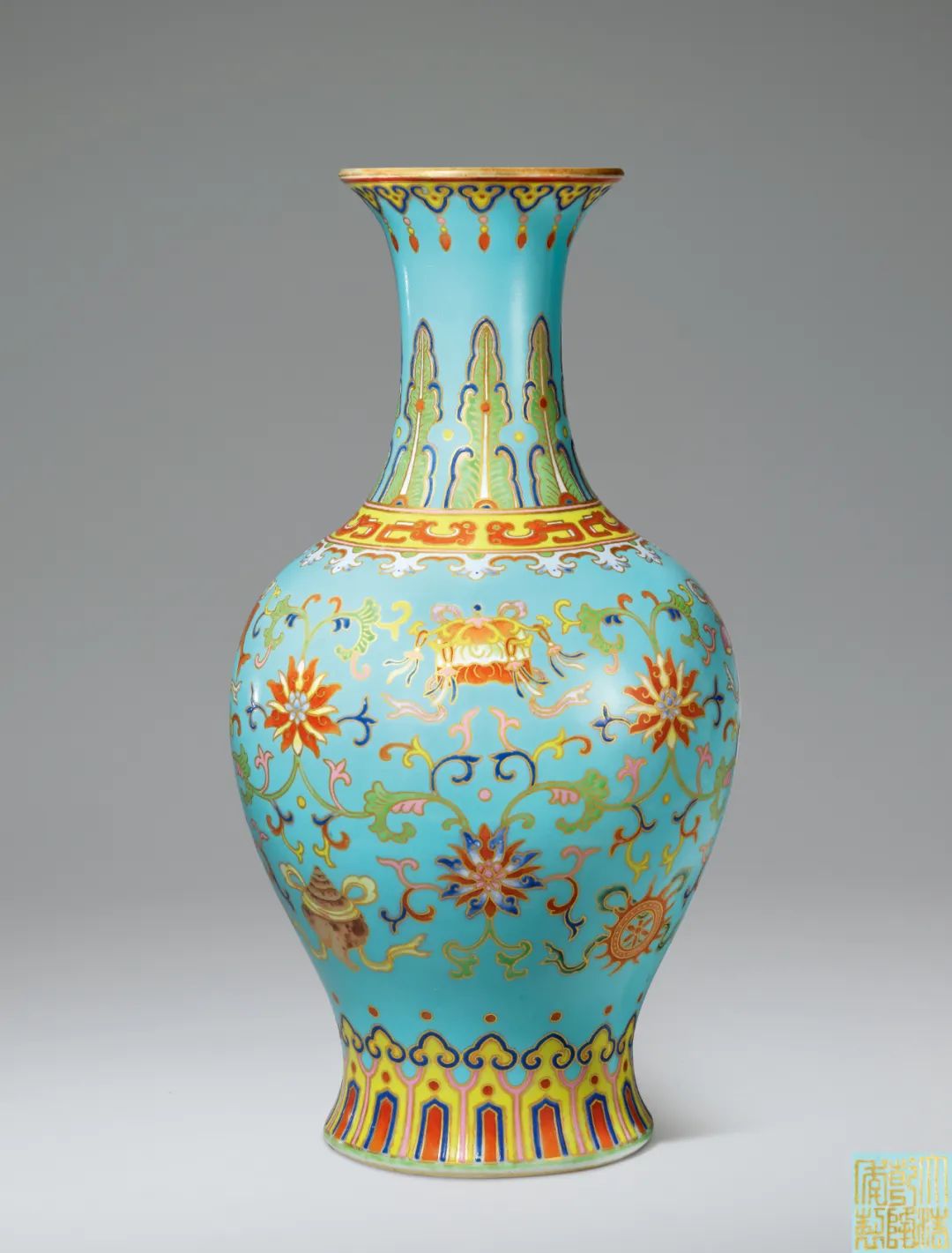 清乾隆 松石绿地粉彩八吉祥纹瓶