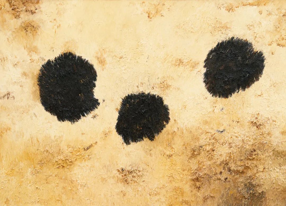 闫冰的「泥土」系列以现实中的土壤为媒材,讲述劳作的成长经历,深刻表达闫冰自我世界观的直接驱动力。完成于2013年的《新泥No.6》则是一件颇具新意之作。作品看似架上绘画,实则是艺术家结合雕塑和绘画的框架形式、呈现「新土」被封存、呵护的过程,实现了艺术和心灵上的耕耘。在此作中,闫冰选择中央上方的一处为种植的起点,将颗颗泥土盘旋铺展,看似平凡而渺小,却汇聚成最为夯实有力的存在,孕育着伟岸的力量。当中的每一颗土粒,皆好似一朵本不起眼的小花,悄然绽放在无垠大地之上,不知觉地在泥土间连成一片,并最终漩涡般地卷起星云之力。凝望着画中的土壤,就象是驻足在自身家乡的山头般,掺着深情的目光穿透回忆,在不断的观看中形成对自身的反思,也时刻提醒心系故土、在脚踏实地中方可展望未来。