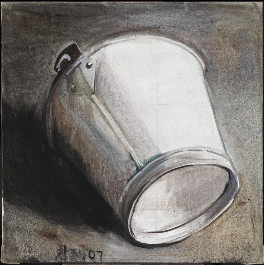 张恩利《水桶3》,油彩画布,100 × 100.3 cm.,2007 年作,伦敦泰特美术馆藏。在泰特美术馆共五件张恩利的藏品中,有三件与是次上拍的《无题》为相近时期的静物作品,见此系列之重要代表性
