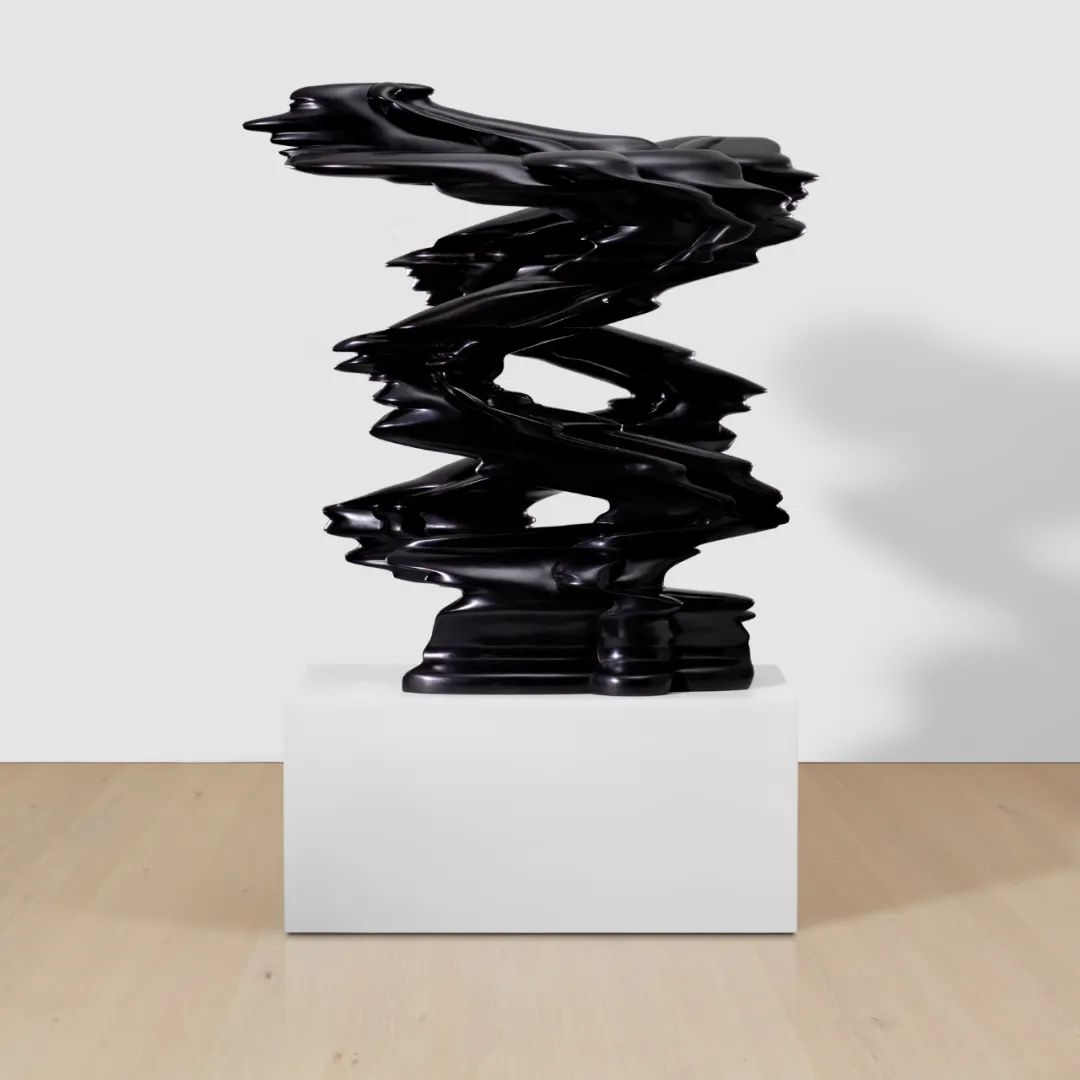 这件领衔作品中,艺术家颠覆雕塑的静态传统,在材料中探寻动态元素,以青铜铸就墨黑色主体,锋锐边缘与流动形态并存,在有机与工业、秩序与混沌间游移。雕塑表面如熔岩般起伏,随视角转换呈现椭圆运动的错觉,呼应未来主义与立体主义概念中,对时空流动的探索。