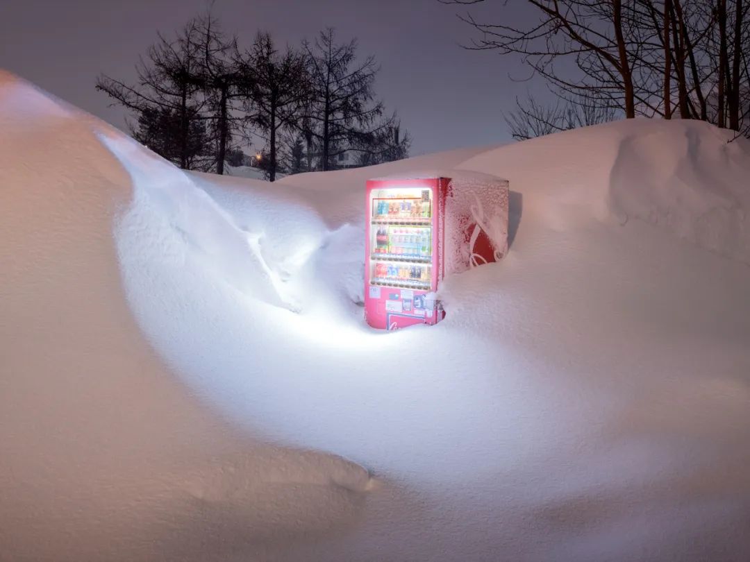 日本摄影师大桥英二以自动贩卖机为切入点,隐喻现代人的生存状态。2022年2月札幌百年一遇的暴雪中,这件他冒险拍摄的作品尤为特殊:被积雪掩埋的贩卖机如宝石般闪烁,时空感在纯白中消融。作为札幌本地人,大桥认为气候变化将使这样的拍摄机会永不再现。这些贩卖机既是日本便利文化的图腾,也承载着维护工人的坚守——他通过镜头捕捉“荒凉之美”,在追溯个人记忆的同时,揭示支撑现代社会运转的隐形劳动。