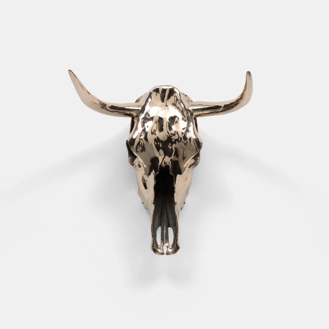 这件作品本身拥有多重隐喻:既是欧姬芙沙漠骸骨的立体转译,又似狩猎战利品,与17世纪静物画相呼应。青铜材质使头骨在自然遗骸与商业设计品两者间保持摇摆,揭示物件的文化赋魅过程。正如艺术家所言,创作只是“提出问题”,“角牛头骨”以其独有态度同时挑战艺术史叙事与文化认知的确定性。