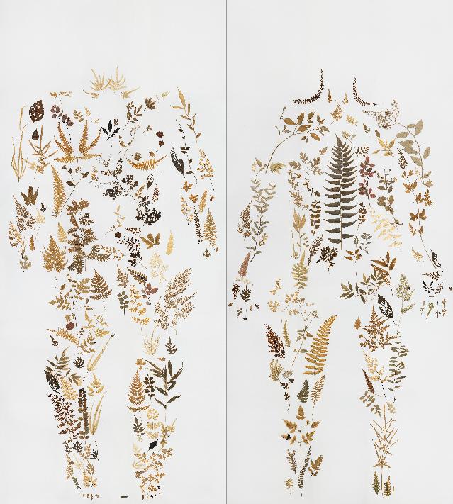童文敏作品《植物标本晒痕文献》(左),收藏级艺术微喷,纯棉、硫化钡纸基,60×80厘米,2021年;《植物标本文献》,植物标本、无酸纸,200×100cm/2件,2022年。致谢北京空白空间