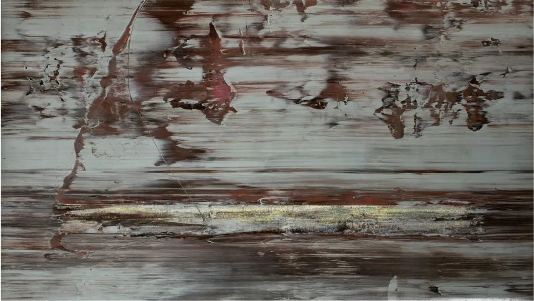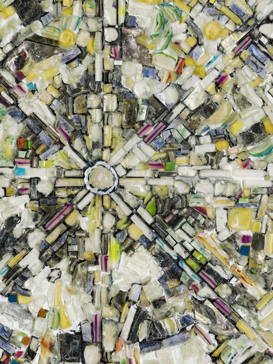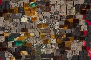 1990年代以后,惠滕将材料实验推向更极端的领域,发展完善了他称之为“镶嵌结构(Tessellated Constructions)”的技术。这种方法将干燥的丙烯酸漆片作为镶嵌块,不均匀地嵌入湿漆中,创造出类似马赛克但更具物质深度的效果。通过反复层叠丙烯色带,惠滕成功地模仿出马赛克镶嵌在湿砖石上的视觉效果。