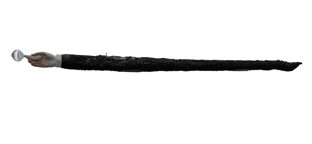 350 × 50 × 50 cm,火烧木、铁、碳渣,2018