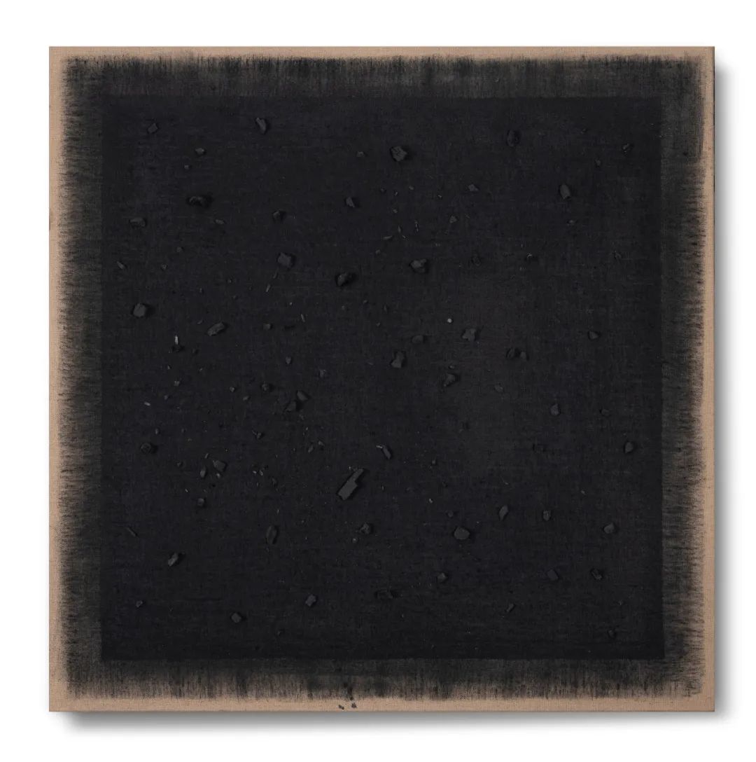 100 × 100cm,亚麻布、炭渣、胶,2024年