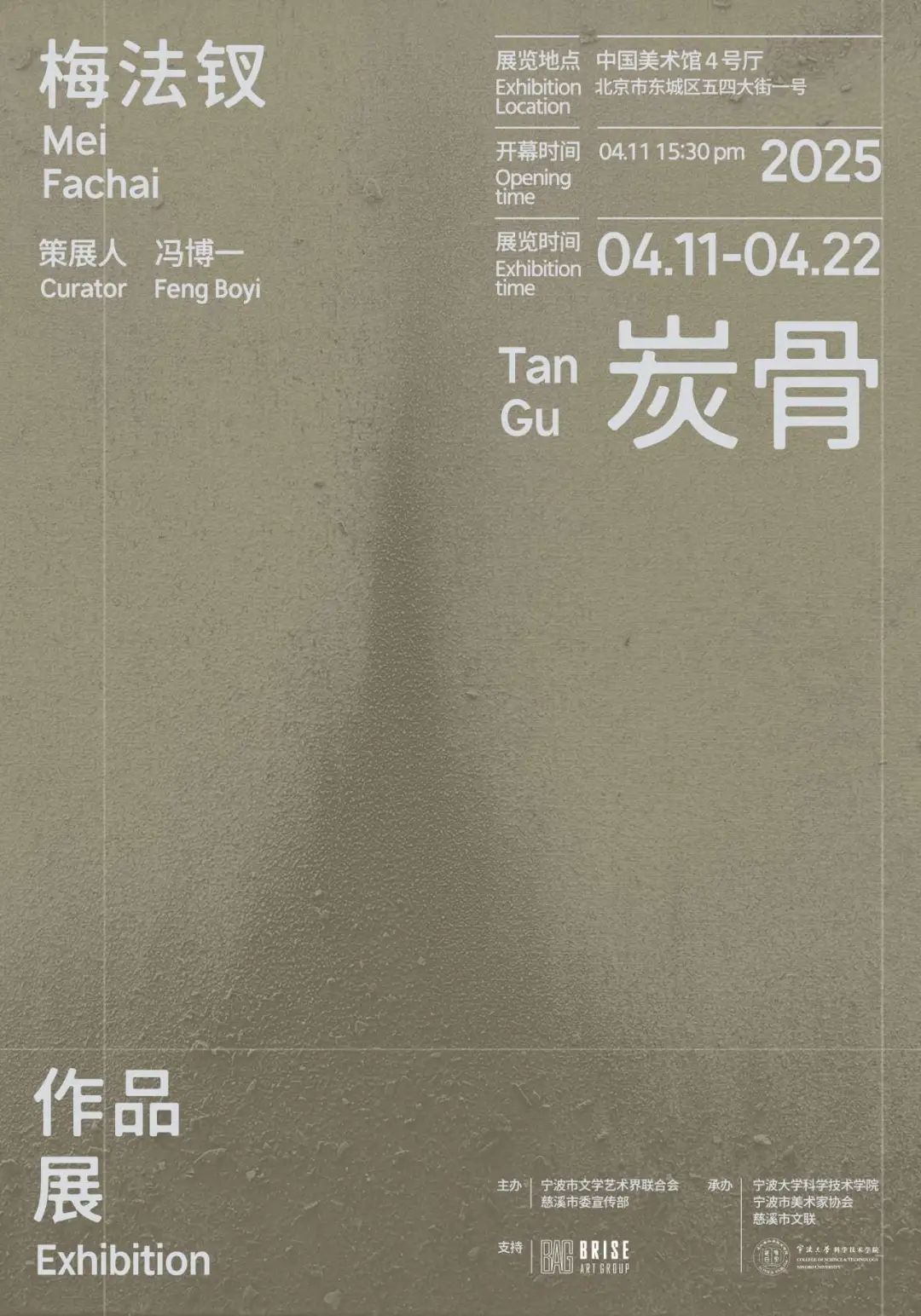 4月11日下午,《炭骨——梅法钗作品展》在中国美术馆开幕。本次展览由宁波市文学艺术界联合会、慈溪市委宣传部联合主办,宁波大学科学技术学院、宁波市美术家协会、慈溪市文联共同承办。展览将持续至4月22日。