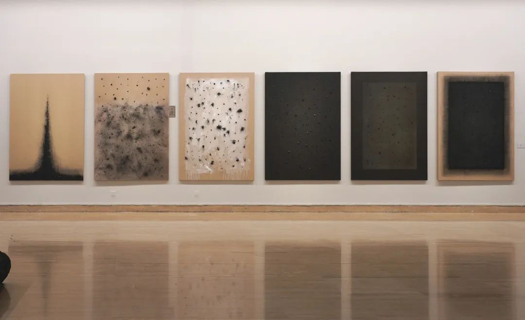 展览主要呈现了梅法钗以焦炭、炭渣为媒介创作的一系列装置、绘画作品,以此探索传统文化、乡土记忆与时空变迁的共生关系。展厅内,焦炭被赋予时间的厚重肌理,炭渣在画布上晕染出星云图般的墨韵,物质转化的密码在灰烬与留白间次第舒展。