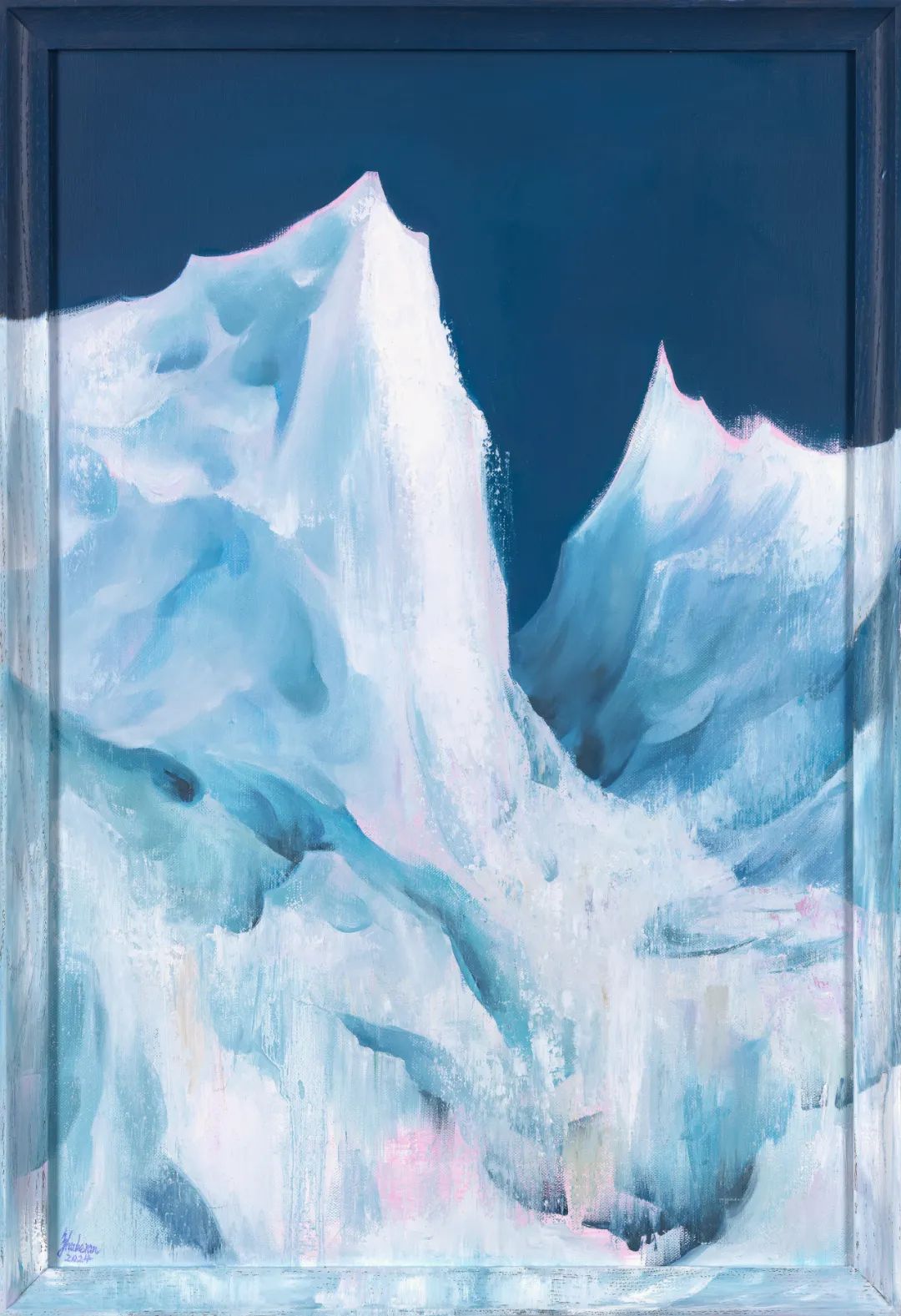 冰川是地球最古老的见证者之一,它跨越千万年甚至更久远的时间。地球历经多次冰河时期的轮回——冰川形成、消融、再形成。正是这些循环,最终孕育了生命的水源。可以说,冰川不仅是古代生命的摇篮,也深刻影响着现代人类的存续。冰川的消长直接调节着全球气候,它的存在维系着生态系统的平衡。倘若冰川彻底消融,人类或许也将面临生存的危机。因此,我画冰川,既是对地球历史的回溯,也是对生命根源的敬畏——它提醒我们,人类与自然始终紧密相连。