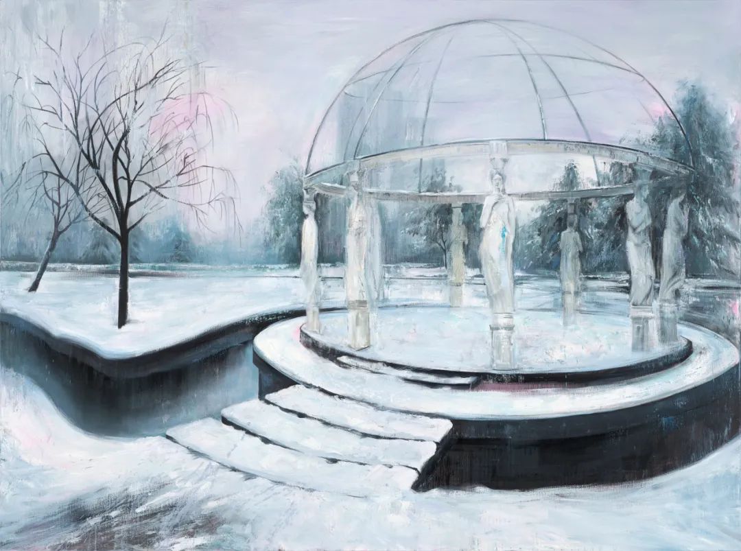 纷繁的幕布上,再喧嚣的图景,都不敌朱可染那如同静谧般河流的作品下隐藏着的汹涌和澎湃。朱可染的笔触是洇开的墨,是晨雾中渐渐明晰的光。她用独特的视觉语言构建了关于时间、记忆与治愈的过程——那些被水流带走的,被冰封存的,被香气缠绕的,都在她的世界里获得另一种形式的新生。