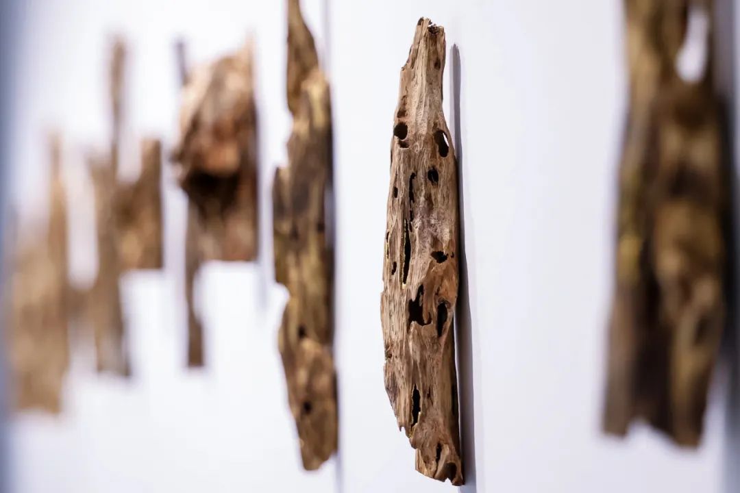 以沉香为研究和转化的《刮骨成香》,构成了她创作中最为独特的章节。历经虫蛀、风吹或日晒侵蚀,腐朽与新生在此和解。经年累月的伤痕结出琥珀色的痂,木纹里蜿蜒的是创伤与愈合的轨迹。朱可染总能在破碎处找到完整,在消逝中触摸永恒。正如她反复提到的“世界以痛吻我,要我报之以歌”。她让观看与感受成为一次朝圣,让每一次凝视变成温柔的叩问。