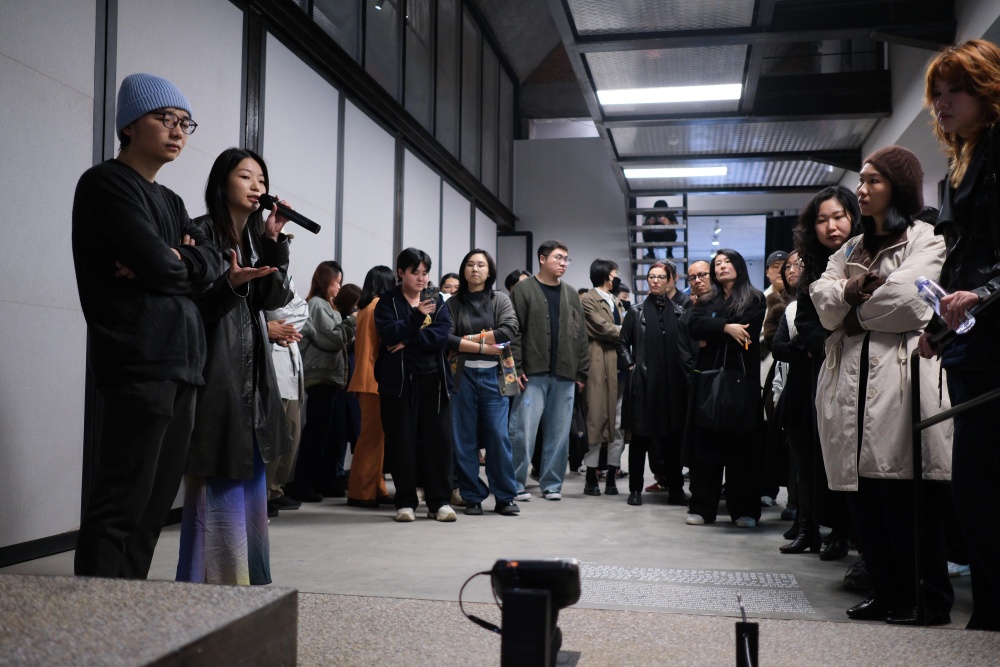 表演结束后,开幕式由山中天艺术中心副馆长张宇飞主持并发表致辞,艺术家谭英杰及策展人唐一菲分别进行了开幕发言,向观众介绍展览与作品理念。