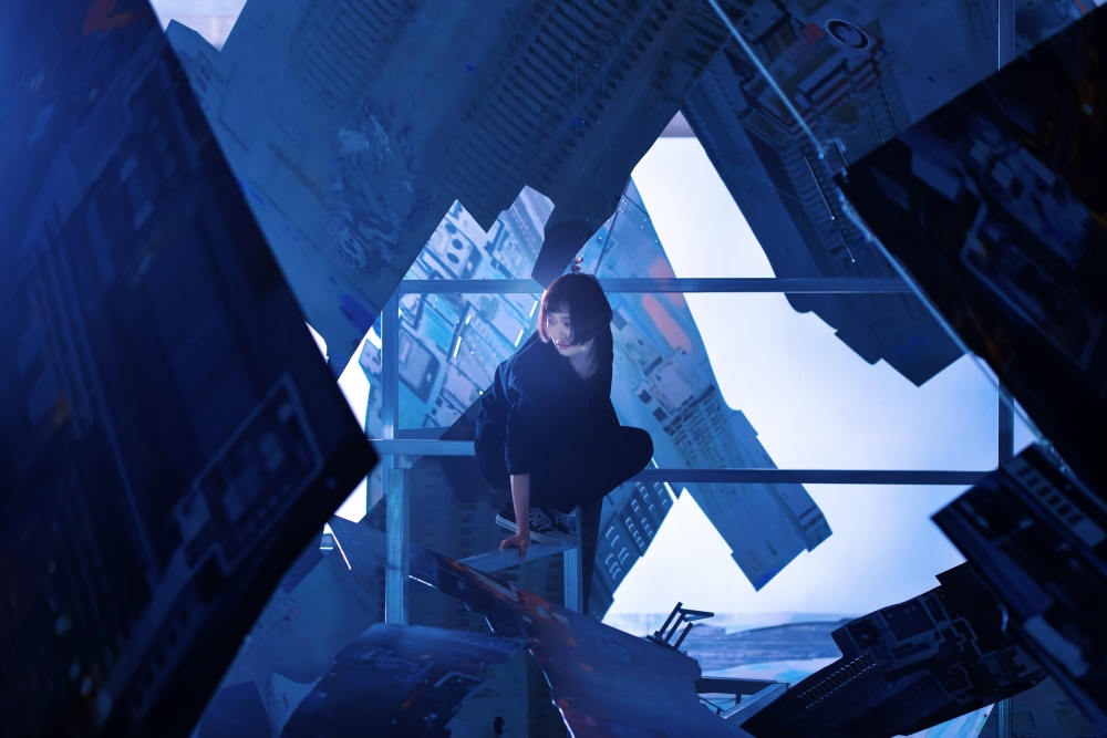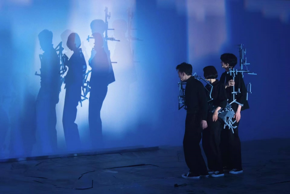 开幕当天,由艺术家执导的装置表演作品《当事物来到你眼前》首次对公众亮相。作品以城市生活为背景,勾勒了个体在城市中所经历的排异反应和游离状态,呈现出主人公试图以记忆折叠时空的徒劳想象。在这场如梦似幻的演出中,苏醒的城市被赋予有机生命。作品借⽤剧场表演的形式,将⽣活中的过街天桥转化为俯视的看台,通过对城市表皮形式化的折叠,向观众构建起一场关于个体内心欲望生成与建构的诗性叙事。