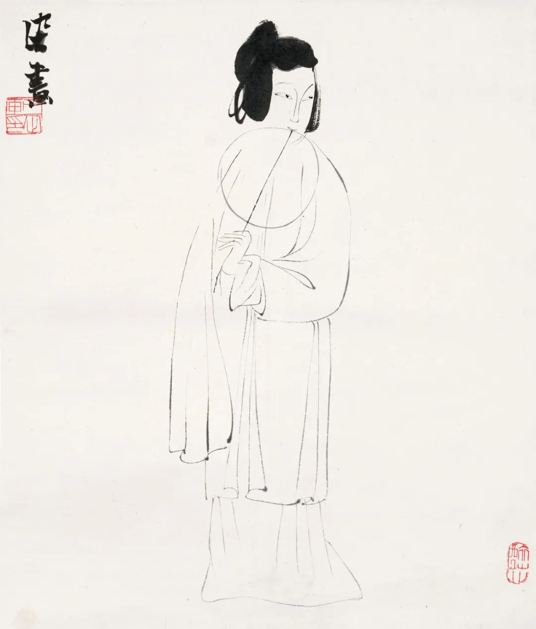 李可染《执扇仕女》